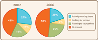 Interest in sourcing from service providers in India and China continues to grow, although it is hardly at an enormous scale. In 2007, 27% of respondents report that their company is already sourcing from India and/or China, up from 20% in 2006 (see Figure 6). Another 30% is figuring out how to source from those countries, but more than 40% continue to say they have no interest in offshoring. Not surprisingly, the greatest interest is among the largest biopharmaceutical and pharmaceutical companies, many of which have established R&D hubs in India and China.