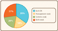 The biggest single constraint cited by service providers is organizational processes, with inadequate capital to fund growth a close second. We explored this issue further by asking service providers whether their management and systems were adequate to handle growth of 20% or more (see Figure 7). Only one-third believe that their systems and management are up to the task: a quarter of contractor respondents indicate that neither systems nor management is adequate, and the rest that one or the other is lacking.