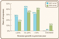 The 2007 edition of the PharmSource–Pharmaceutical Technology Outsourcing Survey indicates that the contract services industry is going through a period of almost unprecedented growth. Pharmaceutical company budgets for contract services are rising, and contractor revenues are growing at double-digit rates, but the volume may be close to outstripping contractors' ability to deliver.