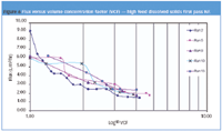 A total of 25 trial runs was performed. The trials programme was designed to establish flux variation with volume concentration at natural and modified pH, as previous trials had indicated flux improvement at slightly acidic conditions. From these trials, batch variability and run time implication on membrane performance was established.
