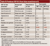 Table III: Povidone USP K-17 from Asian manufacturer B.