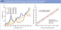Figure 3 (a) Terahertz spectra of binary mixtures of form I and III of carbamazepine; (b) PLS regression used for the quantification of low levels of carbamazepine in binary mixtures of form I in form III.