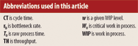 The variables described earlier in this article, including TH, CT, and WIP may be calculated using equations 1–8 (see Table II).