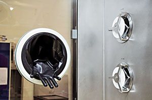 Isolators are undoubtedly the most frequently used form of containment system. They can be put to various different uses and can achieve a high level of containment down to the low nanogram range. Achieving this result in the low nanogram range, however, needs a significant amount of experience in isolator manufacture and design. Here, the glove port design and glass door seals also play an important role, in addition to hygienic design. Figure 2 shows an example of an isolator with high containment.