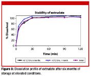 Stability results for melt-extruded samples are available and showed a stable profile over a storage period of 6 months at elevated conditions (see Figure 8). The same results can be expected of the spray- dried samples if the same polymer is used. Stability of spray-dried samples is currently under investigation. Overall, Eudragit E is a suitable carrier for increasing the dissolution of carbamazepine and stabilizing a drug during storage.