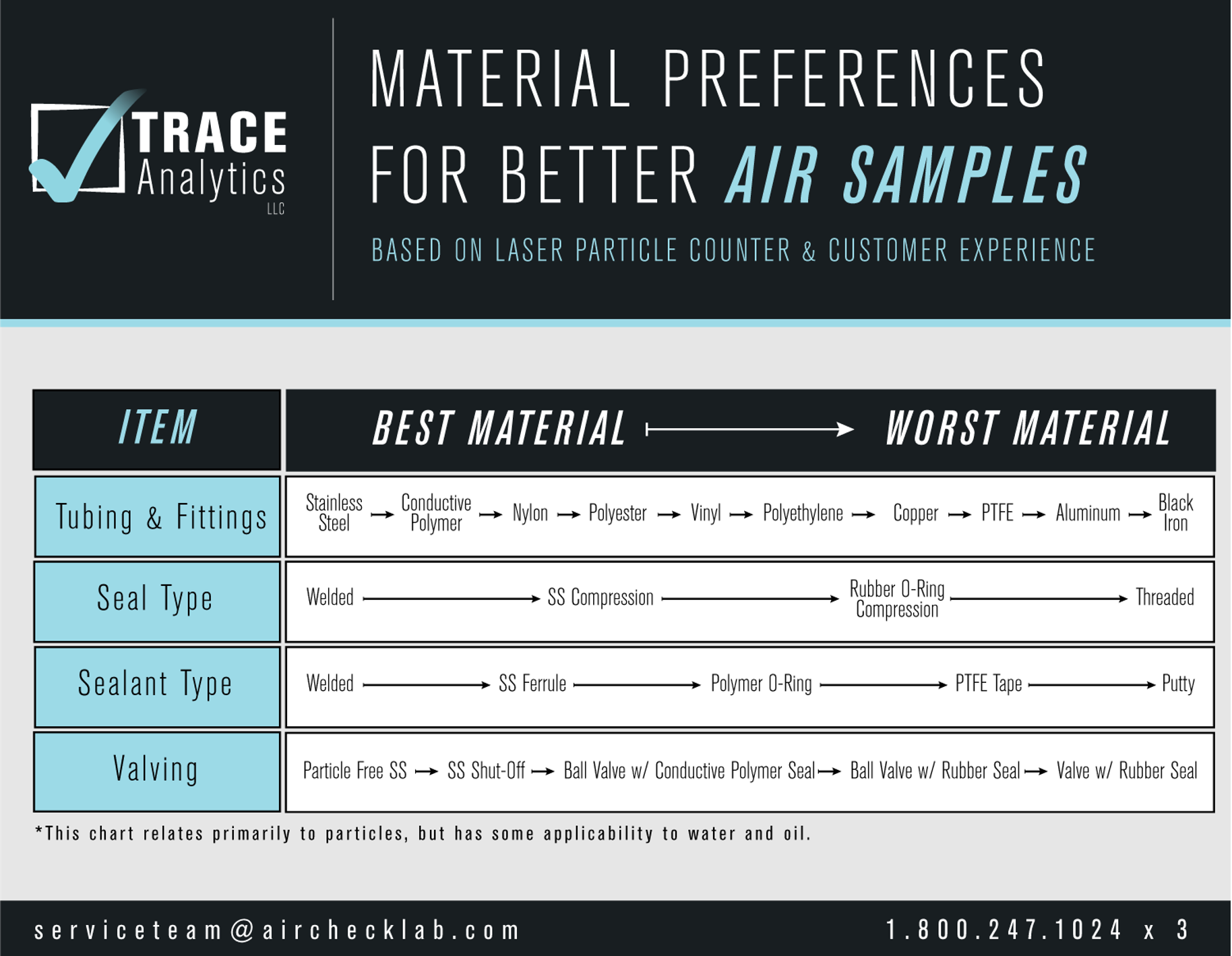 When performing a validation of a new or modified compressed air system, identify the specification requirements, sampling timeline, and required materials for successful testing. Working with a third-party accredited laboratory that specializes in compressed air and gas testing makes the process straightforward. For more information, please contact Trace Analytics via email:sales@airchecklab.com or phone: 512-263-0000 ext 5.