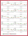 Mapping the chamber to record humidity, temperature, and air velocity. To map the chamber for temperature, humidity, and air velocity measurements at various locations, all shelves were removed except one. This shelf was marked with 23 test locations (see Figure 2). The shelf was placed initially on the upper-most slot (slot 1) and then shifted, level by level, to the lower slots. Temperature, humidity, and air velocity were recorded at all 23 points when the shelf was placed at each level. Air velocity was measured twice at each location, once with the vane probe in a horizontal position and then again with the vane probe upright, to identify even minute amounts of circulating air at each location. The chamber was allowed to equilibrate for ~2 h before measurements were recorded after the shelf was moved to the next slot.