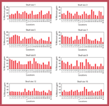 Figure 5: Moisture gain by ethambutol hydrochloride after 8 h at each of the 23 locations on a shelf placed on shelf slots 1, 3, 5, 7, 8, 9, 12, and 15.