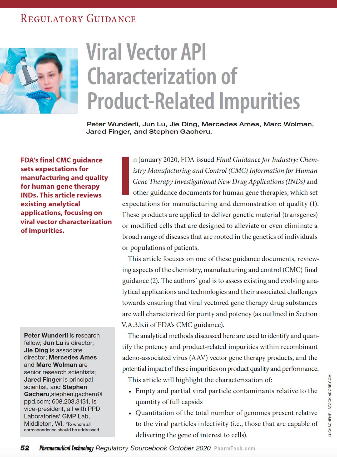 When referring to this article, please cite it as P. Wunderli et al., “Viral Vector API Characterization of Product-Related Impurities," Pharmaceutical Technology Regulatory Sourcebook eBook (October 2020).