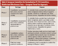 The CEN TC 216 methodology has three phases to its Disinfectant Effectiveness Test—European Tiered Test Approach (see Table II).